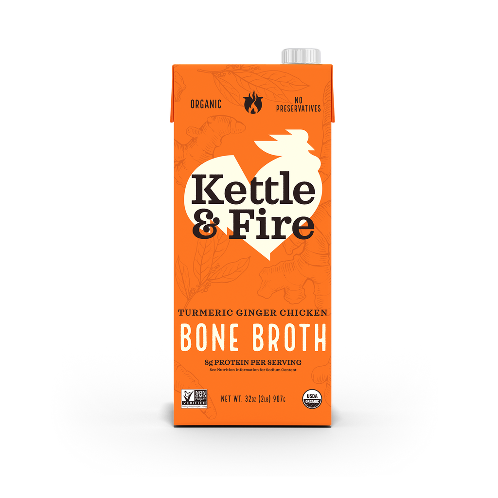 More bone broth for your buck! 32 ounces of our zesty & flavorful Turmeric Ginger Bone Broth, made with free-range chicken & organic ingredients.